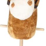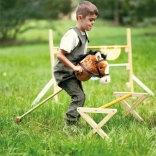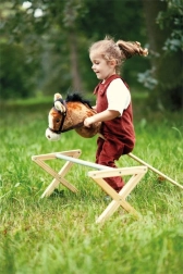 Het pluchen stokpaard Nico is de ideale metgezel voor kleine ruiters. De zachte pluchen paardenkop met hoofdstel en teugels nodigt uit tot fantasierijk spel, terwijl de houten stok met stabiele handgrepen en wieltjes zorgt voor comfortabel en soepel bewegen over de vloer en buiten. Kinderen beleven een extra vleugje echtheid dankzij het geluidseffect: bij het indrukken van de oren hinnikt het paardje vrolijk.