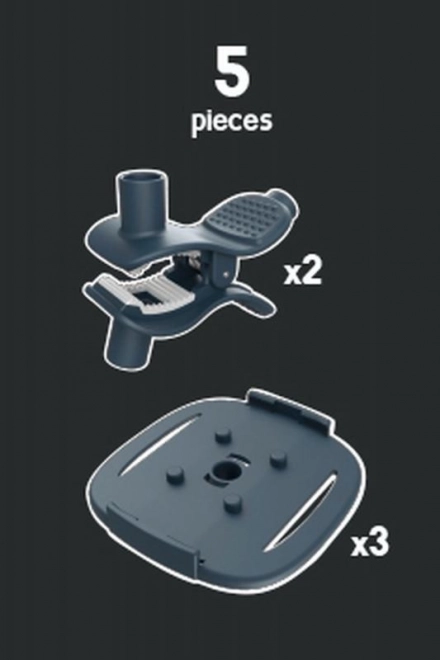 Aanvullende FleXtreme set houders voor de Smoby FleXtreme racebaanwereld, waarin kinderen de gekste banen kunnen bouwen met flexibele rails met flinke stijgingen, dalingen en wilde bochten. De set bevat 2 Multi-Grip bevestigingsklemmen en 3 railsteunen. De railsteunen kunnen op een van de drie punten op de bevestigingsklemmen worden bevestigd; hun gebruik biedt nog meer controle in bochten en voorkomt dat de baan losraakt op plaatsen met scherpe bochten. Het bevestigingssysteem van de Multi-Grip klemmen is zelfs voor kleine kinderen eenvoudig te begrijpen en maakt het mogelijk de baan aan verschillende obstakels te bevestigen: aan een tafel, aan gordijnen, aan een plank, stoel, kast, gordijnroede – kortom overal waar je de baan wilt laten lopen. De klemmen kunnen op verschillende manieren worden bevestigd en er kunnen tot drie railsteunen op worden gemonteerd.