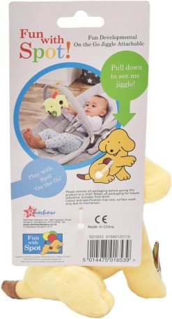 Met het pluche hondje Spot beleeft je kind veel plezier. Dit speeltje ondersteunt de ontwikkeling van de fijne motoriek en zintuiglijke prikkeling. Het hondje is 13 cm hoog en het kleurrijke ontwerp spreekt elk kind aan. Het kan eenvoudig aan het bedje of de autostoel worden bevestigd en dankzij de lange lusjes is het geschikt voor kleine kinderhandjes.