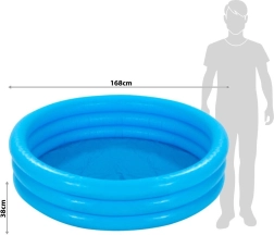 Het opblaasbare zwembad Intex Crystal Blue is een ideale keuze voor warme dagen in de tuin. Dankzij de driekamerconstructie is het stabiel en comfortabel, terwijl de installatie slechts enkele minuten duurt – leg het op een vlakke ondergrond, blaas op en vul met water. Hoogwaardig vinyl met een wanddikte van 0,23 mm en een bodemdikte van 0,18 mm garandeert duurzaamheid en een lange levensduur.