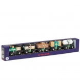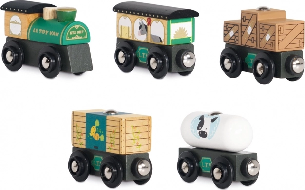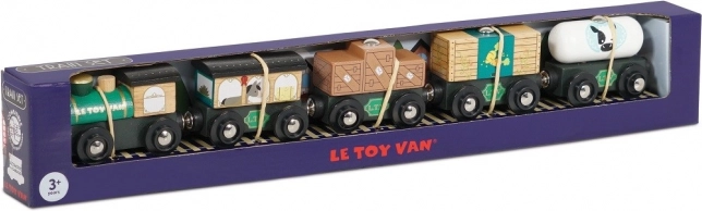 Schattige houten goederentrein in het groen van Le Toy Van, klaar voor fantasierijke avonturen. Gemaakt van duurzaam hout, met de hand nagewerkt met niet-giftige verf op waterbasis en dankzij magnetische koppelingen zijn de wagonnetjes eenvoudig te verbinden. Compatibel met de meeste houten treinbanen, stimuleert motoriek, taal en sociale vaardigheden. Ideaal voor kinderen vanaf 3 jaar.