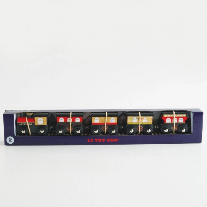 De stijlvolle houten trein ROYAL EXPRESS van Le Toy Van verrukt zowel kinderen als ouders. Bevat een locomotief en vijf wagons met magnetische koppeling, is gemaakt van duurzaam hout en beschilderd met niet-giftige verf op waterbasis. Stimuleert de fijne motoriek, fantasiespel en is compatibel met de meeste houten treinbanen.