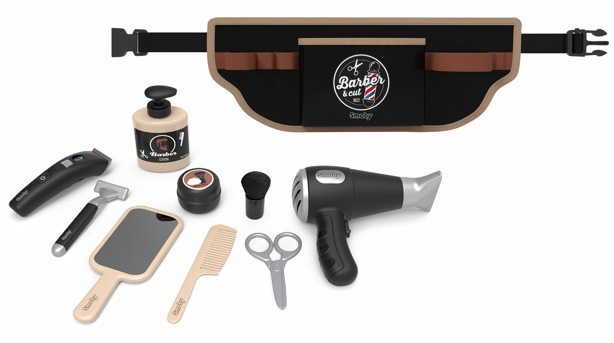 De Smoby myBeauty kappersriem voor kinderen verandert elke dag in een leuk salonavontuur. Dankzij de verstelbare riem hebben kinderen alle hulpmiddelen veilig opgeborgen en altijd bij de hand – van föhn en schaar tot kam en scheerapparaat. De interactieve föhn maakt realistische geluiden, waardoor het spel levensecht aanvoelt.