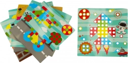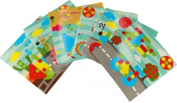 De geperforeerde plaat en kaarten met afbeeldingen helpen eenvoudig raketten, dieren en eigen ontwerpen te maken; vormen en kleuren leren wordt kinderspel.