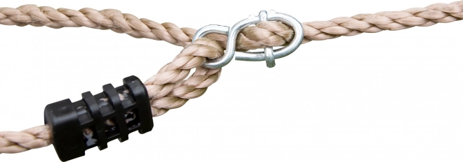 Het klimnet is uitgerust met robuuste plastic klemmen en metalen oogjes die eenvoudig en stevig bevestigen garanderen.