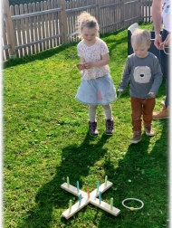 Beleef samen met de kinderen veel plezier met dit houten buitenspel.