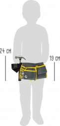De riem heeft 8 vakken, een lus voor de hamer en een karabijnhaak voor eenvoudige organisatie van het gereedschap.