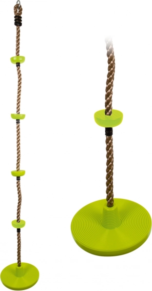 De 2-in-1 klimschommel van het merk Small Foot combineert een klimtouw met vier groene treden en een grote onderste schijf die als zitting dient. Dankzij robuuste kunststof en antislip ribbelprofiel is de grip zeker en comfortabel. Het touw is ideaal voor actief spelen, het ontwikkelen van motoriek en het versterken van het hele lichaam.