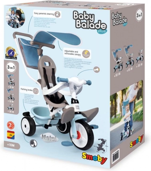 De SMOBY Baby Balade Plus is een betrouwbare eerste driewieler die je kind begeleidt van de eerste ritjes tot aan zelfstandig rijden. Ouders waarderen de duwstang met verstelbare hoogte en de stuurblokkering voor gemakkelijke bediening, evenals de parkeerrem voor veilig stoppen. Dankzij het freewheel-mechanisme kan het wiel draaien terwijl de pedalen stil blijven staan – ideaal wanneer een volwassene duwt.