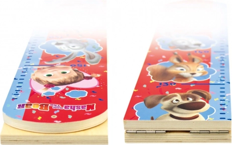 Houten (MDF) groeimeter met vrolijke illustraties uit de serie Masha en de Beer past perfect in elke kinderkamer. De gedrukte schaal maakt het makkelijk om de groei overzichtelijk bij te houden van 80 tot 160 cm, zodat je een mooie herinnering aan de kindertijd hebt.