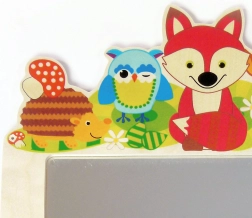 Deze kwalitatieve houten kapstok met het speelse Bosdieren-motief brengt kleur en orde in de kinderkamer. Dankzij de vijf stevige haken organiseer je eenvoudig jassen, hoodies, rugzakjes en accessoires. De geïntegreerde spiegel van onbreekbaar plexiglas is licht, veilig en ideaal voor dagelijks gebruik.