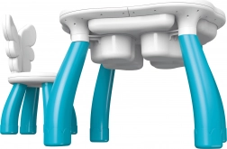 De Qman multifunctionele kindertafel is de perfecte combinatie van functionaliteit en plezier. Maak gebruik van zijn ruime ruimte voor het bouwen met middelgrote blokken. Het speelbord kan ook voor alledaags gebruik dienen - om te schrijven en te tekenen. Vooral kinderen zullen genieten van de mogelijkheid om de tafel met water of zand te vullen, wat rijke speelervaringen toevoegt. De tafel is voorzien van draaibare schalen voor blokken, die eenvoudig verborgen kunnen worden zodat ze andere activiteiten niet belemmeren.