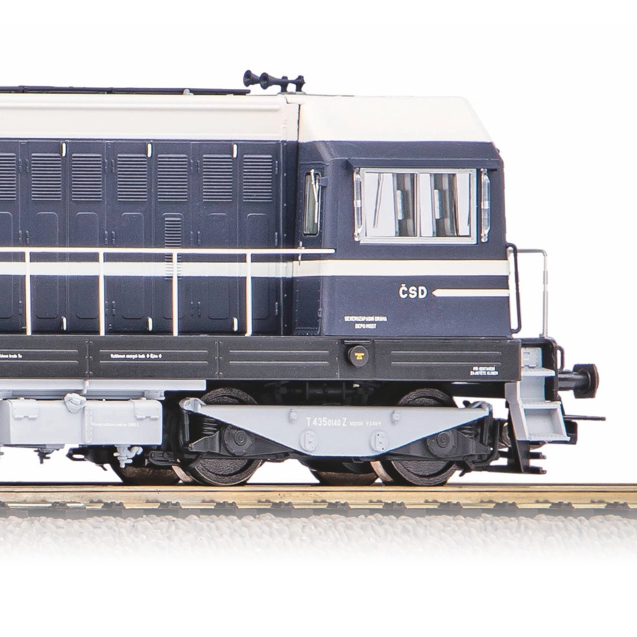 Voorbeeld van het geluid van de ingebouwde digitale decoder. Nieuw voor 2021 uit de Expert-productlijn! Natuurgetrouw en gedetailleerd model van de rangeerdiesellocomotief T 435 (BR 107) in de kleuren en opdruk van de ČSD. Het precieze vakmanschap wordt versterkt door de geperste details op de frontzijde van de locomotief. De kleurstelling en opdruk, inclusief alle decoratieve elementen, zijn van de hoogste kwaliteit die past bij de productlijn. Het model is uitgerust met een krachtige motor met vliegwielen. Wit/rood LED-licht wisselt afhankelijk van de rijrichting. Ook de machinistencabine en het treinnummerbord zijn verlicht, alles schakelbaar via digitale besturing. Het model is voorzien van een digitale decoder met geluidsmodule en luidspreker, met een geluidsbibliotheek die trouw is aan het voorbeeld. Compatibel met de protocollen DCC, Rail-ComPlus®, Motorola® en Selectrix®, en ook geschikt voor analoge bedrijfsmodus. De passende bedrijfsmodus wordt automatisch intelligent herkend. Met PIKO SmartControl-bedieningsunits, of units die compatibel zijn met het mfx®-formaat, zijn uitgebreide mogelijkheden voor individuele functiemapping beschikbaar. Bij de locomotief zijn wagons van het bijpassende type en uitvoering verkrijgbaar. Belangrijkste kenmerken: ingebouwde digitale decoder met geluidsmodule en luidspreker; vier assen; motor met twee vliegwielen; twee aangedreven wielen met antislipbanden; verlichting met kleurwisseling afhankelijk van de rijrichting; interieurverlichting; PluX22-interface conform NEM 658; NEM 362-schacht met kortkoppelingkinematica. Documentatie: brochure voor BR 107/T 435 (DE); algemene informatie voor BR 107/T 435 (DE, EN, F, NL); gebruiksaanwijzing en lijst met reserveonderdelen model nr. 52428 (DE, EN, F, CZ)