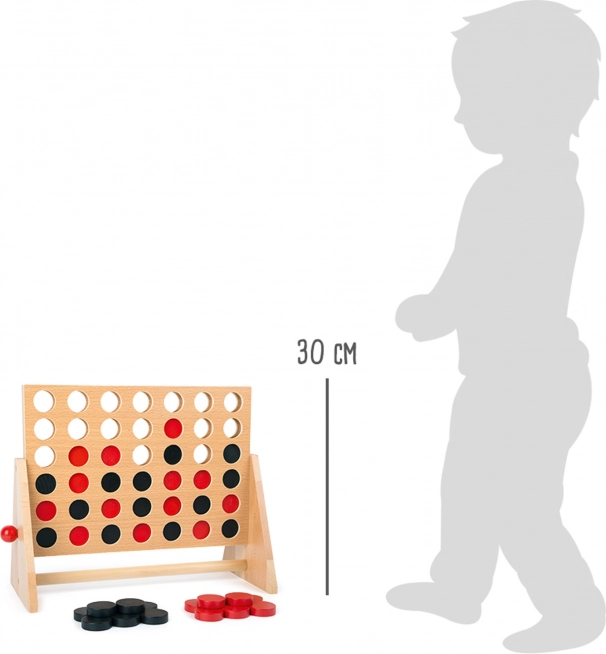 Dit klassieke bordspel voor twee spelers biedt spannende strategie: laat je fiches zo vallen dat je 4 op een rij hebt – horizontaal, verticaal of diagonaal. Het robuuste houten frame en de gladde fiches zorgen voor een prettige haptische ervaring en een lange levensduur.