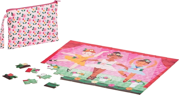 Laat het toneel tot leven komen met de dubbelzijdige kinderpuzzel met ballerina’s! De set bevat 49 stukjes en 2 originele designs op de voor- en achterkant. Dankzij het praktische rits-etui ideaal voor thuis en onderweg. Gemaakt van FSC-papier en een buitenhoes van 100% gerecycled polyester, verpakt zonder plastic.