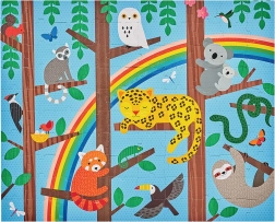 Vrolijke junglebewoners en rijke kleuren ondersteunen vormherkenning, concentratie en de fijne motoriek van kinderen.