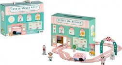 - Inhoud van de set: dubbelzijdige ijssalon, houten opwindbare ijskar, 8 stuks baan, 10 stuks aanvullende speelelementen