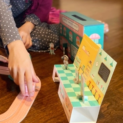Gemaakt met oog voor de planeet – gebruikt karton, papier en hout dragen een FSC-certificering, de verpakking is volledig plasticvrij. De set stimuleert fijne motoriek, verbeeldingskracht en rollenspel bij kinderen vanaf 3 jaar.