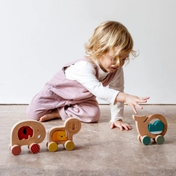 De gemakkelijk vast te pakken wieltjes bevorderen de ontwikkeling van motorische vaardigheden en coördinatie.