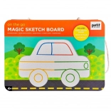 Prikkel de verbeelding van kinderen met dit magnetische tekenbord. Perfect voor thuis en onderweg, met een magische pen die met een koord aan het bord vastzit, een wisser en 5 sjablonen om mee te tekenen.