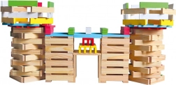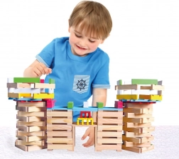 Met dit bouwpakket zijn er geen grenzen aan de kinderfantasie! Het houten bouwpakket stad Bino bestaat uit in totaal 150 stukken, die de bouw van diverse structuren mogelijk maken en logisch denken bevorderen door middel van een uitgebreid ontwerp en kleurrijke contrasten.