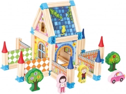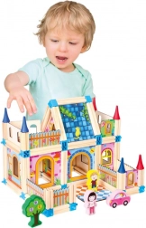 Ontdek een wereld van eindeloze fantasie met het houten bouwpakket Bino Kasteel. Dit bouwpakket biedt kinderen de mogelijkheid om alles te bouwen van huizen tot kastelen en paleizen, allemaal met nadruk op een uitgewerkt ontwerp en kleurcontrasten die logisch denken ondersteunen. Elke set bevat een brochure met ontwerpen voor creatieve bouwwerken, zodat het kind meteen aan de slag kan gaan met creëren.