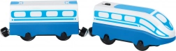 Deze hogesnelheids elektrische locomotief met wagon is de ideale aanvulling op elke houten treinbaan. Dankzij de compacte afmetingen, eenvoudige bediening en magnetische koppeling van de wagon biedt hij kinderen uren speelplezier en stimuleert hij tegelijkertijd de fijne motoriek en de verbeelding.