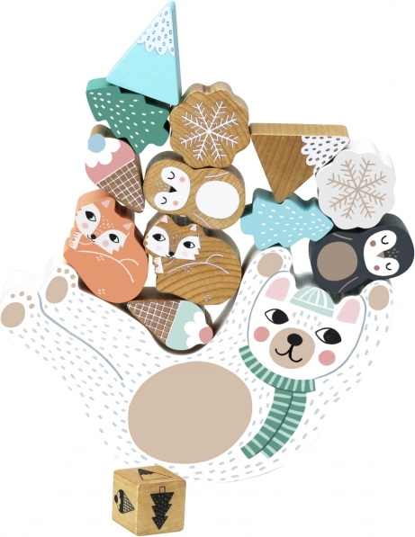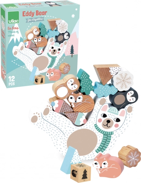 Schattig houten balansspel met beertje Eddy dat fijne motoriek, geduld en coördinatie ontwikkelt. Gooi met de dobbelsteen en leg volgens de kleur sneeuwvlokken, poolvossen, pinguïns, bergen of ijsjes op het buikje van de beer. Wie de toren het langst in evenwicht houdt, wint! Ecologisch geproduceerd, geïllustreerd door Michelle Carlslund.