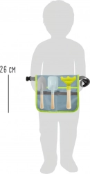 Het textiele heuptasje met praktische vakken houdt het gereedschap veilig op zijn plaats. De verstelbare riem met kliksluiting past zich eenvoudig aan de groei van het kind aan.