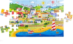 Deze puzzel helpt het ruimtelijk inzicht en probleemoplossend vermogen van kinderen te ontwikkelen met een kleurrijk stads thema.