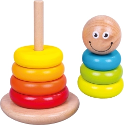Klassiek houten speelgoed voor de allerkleinsten dat de fijne motoriek, oog-handcoördinatie en kleurenherkenning ontwikkelt. De gekleurde ringen zijn eenvoudig over de houten staaf te schuiven en het vrolijke gezichtje maakt het spelen extra leuk. Gemaakt van hoogwaardig hout, voldoet aan de Europese veiligheidsnormen en is ideaal voor kinderen vanaf 18 maanden.