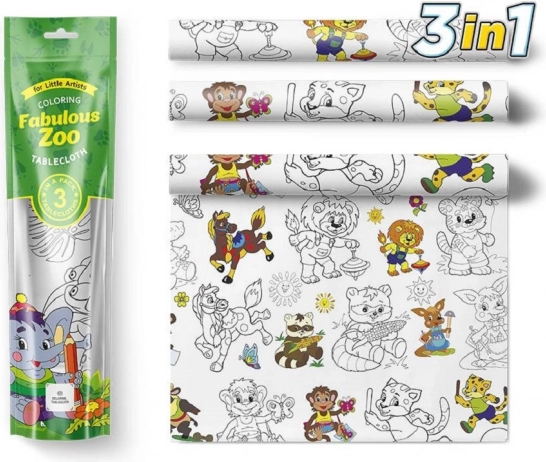 Elk laken kan eenvoudig in drie delen worden verdeeld, wat samenwerking en delen tussen meerdere kinderen stimuleert. Inkleuren moedigt kinderen aan tot creativiteit, verbetert de concentratie en de fijne motoriek. Het laken kan zowel op kinderfeestjes als als gewoon tafelkleed worden gebruikt.