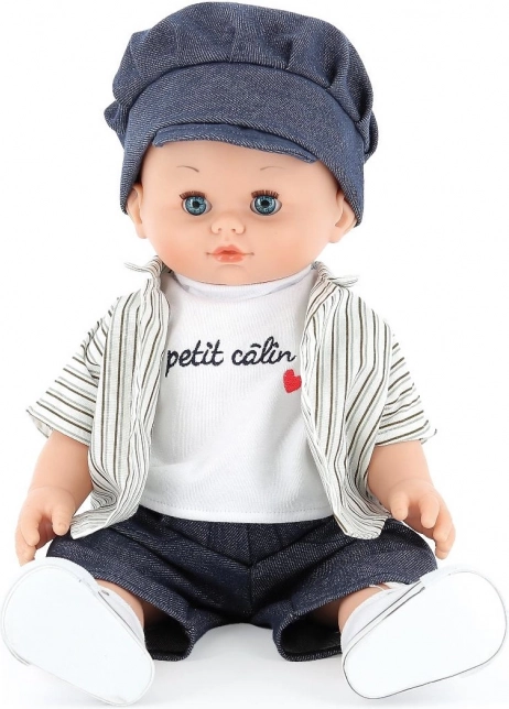 Subtiel geurig naar vanille, schittert pop Jules in een overhemd, stijlvolle muts en sneakers, en biedt zo echte Franse elegantie. Hij is gemaakt van soepel en warm vinyl, waardoor kinderen zich er van nature dicht bij voelen. De pop heeft slaapoogjes met lange wimpers, wat de authenticiteit van het spel verhoogt. De praktische outfits zijn ontworpen met unieke patronen en kleuren, wat zorgt voor een onmiskenbare en opvallende uitstraling.