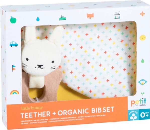 Het lieve konijntjesontwerp zal elk kind en diens ouders blij maken. De bijtring is gemaakt van biologische katoen en stevig beukenhout met FSC-certificering, wat zorg voor de natuur garandeert. Het slabbetje is absorberend en verstelbaar dankzij drukknoopjes en beschermt kinderkleding perfect.