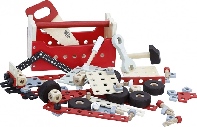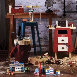 Zoekt u speelgoed dat de motorische vaardigheden en het creatieve denken van uw kinderen stimuleert? De dubbele gereedschapskoffer Vilac is de juiste keuze! Deze set bevat maar liefst 96 onderdelen, waarmee modulaire constructies zoals een vrachtwagen, een kraan of zelfs een robot kunnen worden gebouwd. Design Atelier Vilac garandeert hoogwaardige afwerking en een aantrekkelijke vintage look. Kinderen kunnen in de rol van kleine klusser stappen en hun speelgoedrijk laten stralen.