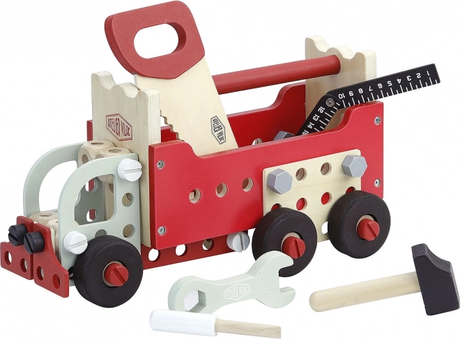 De set is grotendeels gemaakt van hoogwaardig hout en bevat duurzame componenten die een lange levensduur van het speelgoed garanderen.