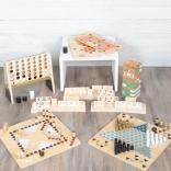 Trendy pasteltinten, gouden details en natuurlijk hout maken van dit spel een stijlvol item dat perfect past in elk interieur.