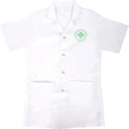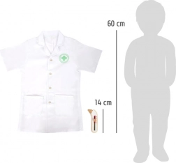 De small foot doktersset voor kinderen biedt alles wat kleine artsen nodig hebben voor hun eerste praktijk. De jas in maat 110 is geschikt voor kinderen van 105–110 cm en is dankzij de drukknoopsluiting gemakkelijk aan en uit te trekken. De houten accessoires liggen prettig in de hand, zijn duurzaam en veilig voor kinderspel.