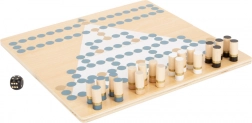 Ontdek de dubbelzijdige houten small foot Gold Edition die de klassiekers Halma en Barricade (Malefiz) combineert in een elegant design met gouden details, rookkleurig blauw, zwart, wit en naturel hout. De tweedelige, magnetisch gekoppelde speelbordhelften zorgen voor stabiliteit en eenvoudig opbergen in de stevige doos. Een geweldige keuze voor gezinsplezier, en ter bevordering van strategisch denken en concentratie.