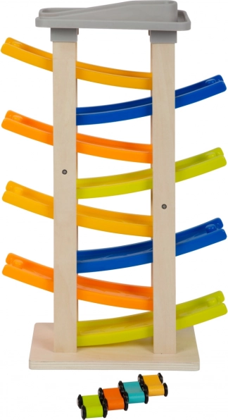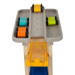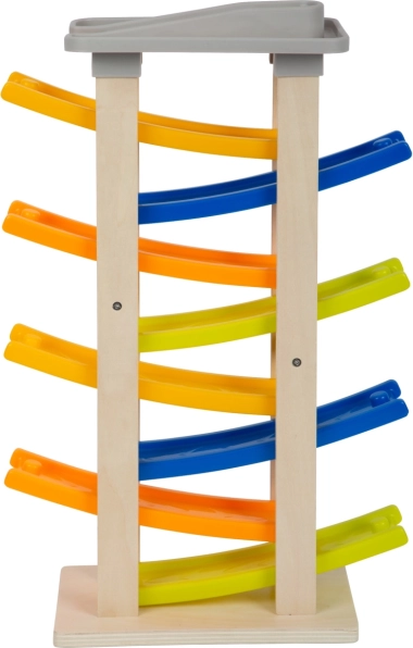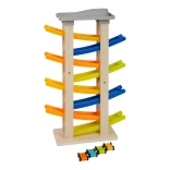Maak kennis met deze unieke racebaan met acht hellingen, die elk klein raceautootje zal fascineren. Bovenop de baan is een handige parkeergarage voor vier houten autootjes. Dit speelgoed ondersteunt akoestische waarneming dankzij de klapperende geluiden die de autootjes maken tijdens het afdalen. Dankzij de brede basis is de baan uitzonderlijk stabiel en veilig.