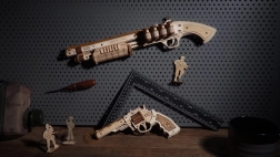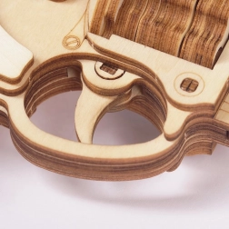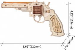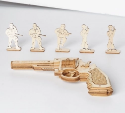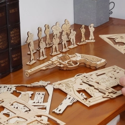 De revolver is gemaakt van hoogwaardig hout en zijn onderdelen zijn nauwkeurig uitgesneden, wat zorgt voor perfecte verbindingen tijdens de montage.