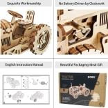 ROBOTIME Rokr biedt een fascinerende 3D houten puzzeltractor met realistische details. Dit mechanische model heeft geen batterijen nodig; draai gewoon de motor met een sleutel op en zie hem tot leven komen. Door het stuur te draaien kan de beweging van de voorwielen worden veranderd, wat bijdraagt aan de interactiviteit.