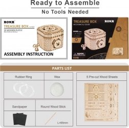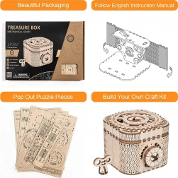 Het houten mechanische puzzelsieradenkistje van multiplex is een uniek cadeau voor doe-het-zelf liefhebbers en luxe interieurdecoratie. Het samenstellen van het kistje is van gemiddelde moeilijkheid en vormt een geweldige uitdaging met 123 nauwkeurig uitgesneden stukken. Het kistje bevat twee compartimenten, waaronder het hoofdcompartiment dat beveiligd is met een driecijferige code, die door de gebruiker kan worden gekozen uit veel combinaties.