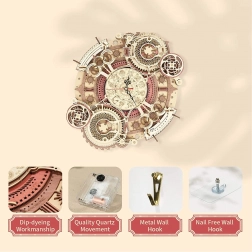 Ontdek de kunst van het klokkenmaken met onze 3D houten mechanische puzzel. Dit model blinkt uit in zijn complexiteit en precisieafwerking, wat de aandacht trekt van alle doe-het-zelvers en steampunkontwerp liefhebbers. Ideaal om aan de muur te hangen, biedt dit model esthetisch en functioneel gebruik, met dank aan de elektrisch aangedreven klok en decoratieve kalender.