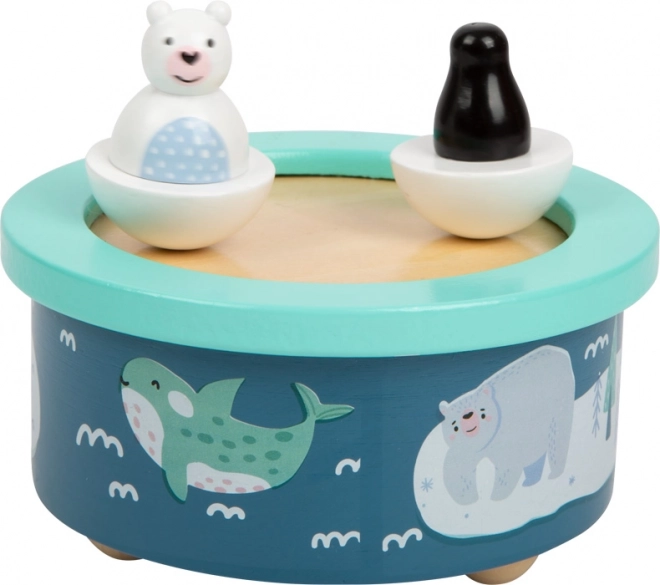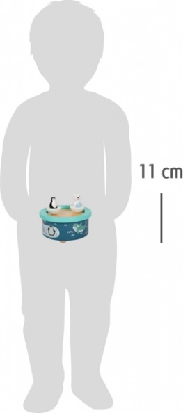 De muziekdoos Arctic met arctisch thema biedt kinderen een rustgevend Engels wiegelied. De figuren van de ijsbeer en de pinguïn draaien rond op het ritme van de melodie, wat zorgt voor een visueel aantrekkelijke ervaring. Dankzij de afneembare houten figuren met magneet kun je de muziekdoos eenvoudig aanpassen aan je smaak.