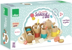 Het grote houten theeservies van VILAC biedt kinderen een authentieke ervaring van een theepartij. Dankzij 21 zorgvuldig afgewerkte onderdelen in zachte pasteltinten kunnen kinderen thee serveren, macarons en koekjes aanbieden en beleefdheid en tafelmanieren oefenen.