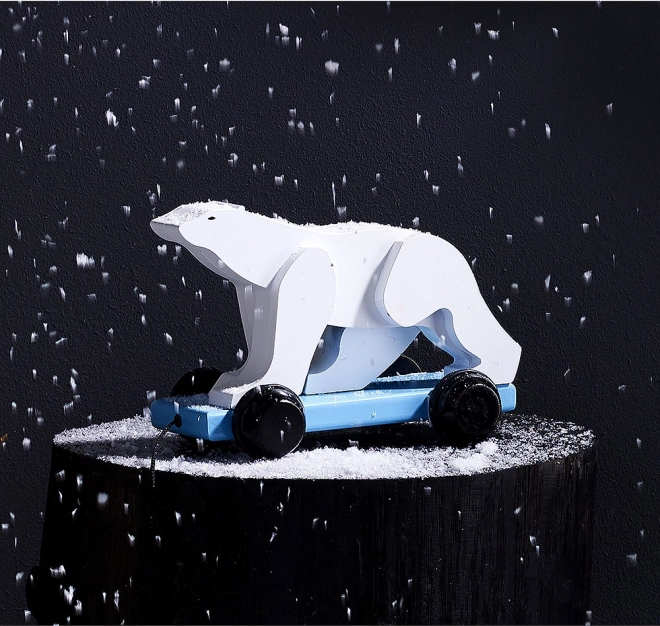 Een schattige houten trekbeer, geïnspireerd door het werk van beeldhouwer François Pompon, verrukt kleine ontdekkers vanaf 18 maanden. Het speeltje met glad oppervlak, stevige constructie en stille wieltjes ondersteunt de coördinatie van bewegingen, de ontwikkeling van grove motoriek en het plezier van de eerste stapjes.