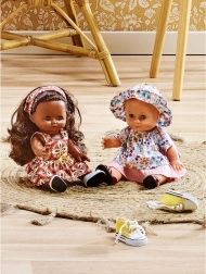 Pop Ally is klaar voor elk avontuur met uw kind, gekleed in prachtige Franse kleding met sandalen en een bloemenhoed. Gemaakt van flexibel vinyl met een vanillegeur, voelt ze prettig aan en stimuleert ze tederheid bij kinderen.