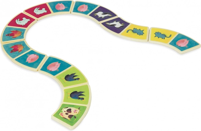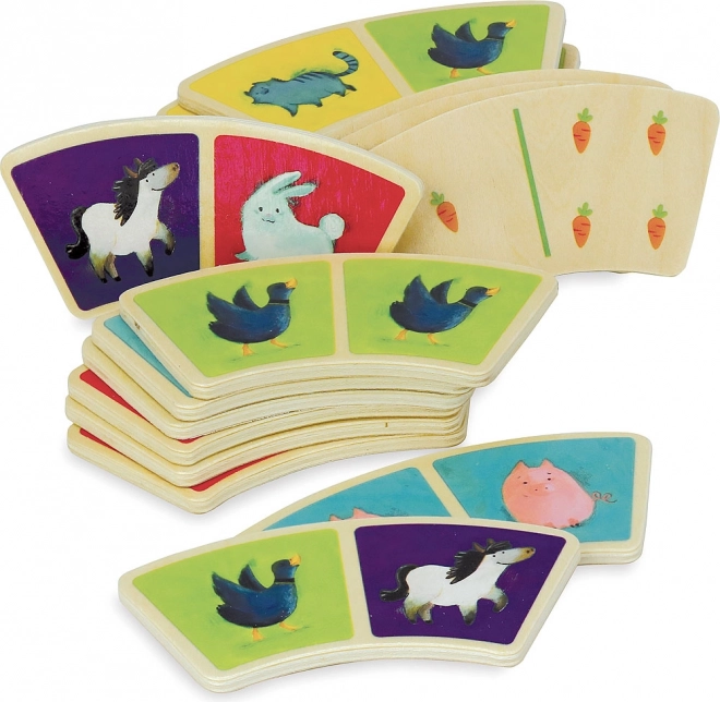 Verrijk het spel van je kinderen met deze originele dominodoos met een prachtig boerderijmotief van het merk Vilac. Dankzij de gebogen vorm zijn de dominosteentjes niet alleen uniek, maar ook gemakkelijk vast te pakken, zelfs voor kleine kinderhanden. De set bevat in totaal 28 houten steentjes, goed voor eindeloos speelplezier. Domino helpt bij de ontwikkeling van aandacht, fijne motoriek en logisch denken.