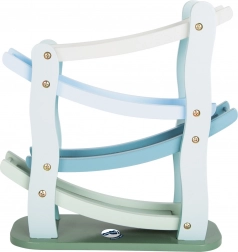 De houten kaskadebaan SMALL FOOT Blue is een geweldige speelkameraad voor kinderen vanaf 18 maanden. De autootjes starten vanaf de bovenste verdieping en zoeven over de schuine hellingen naar beneden, terwijl ze spectaculair omklappen – dit alles stimuleert concentratie, geduld en plezier in het ontdekken van oorzaak en gevolg.